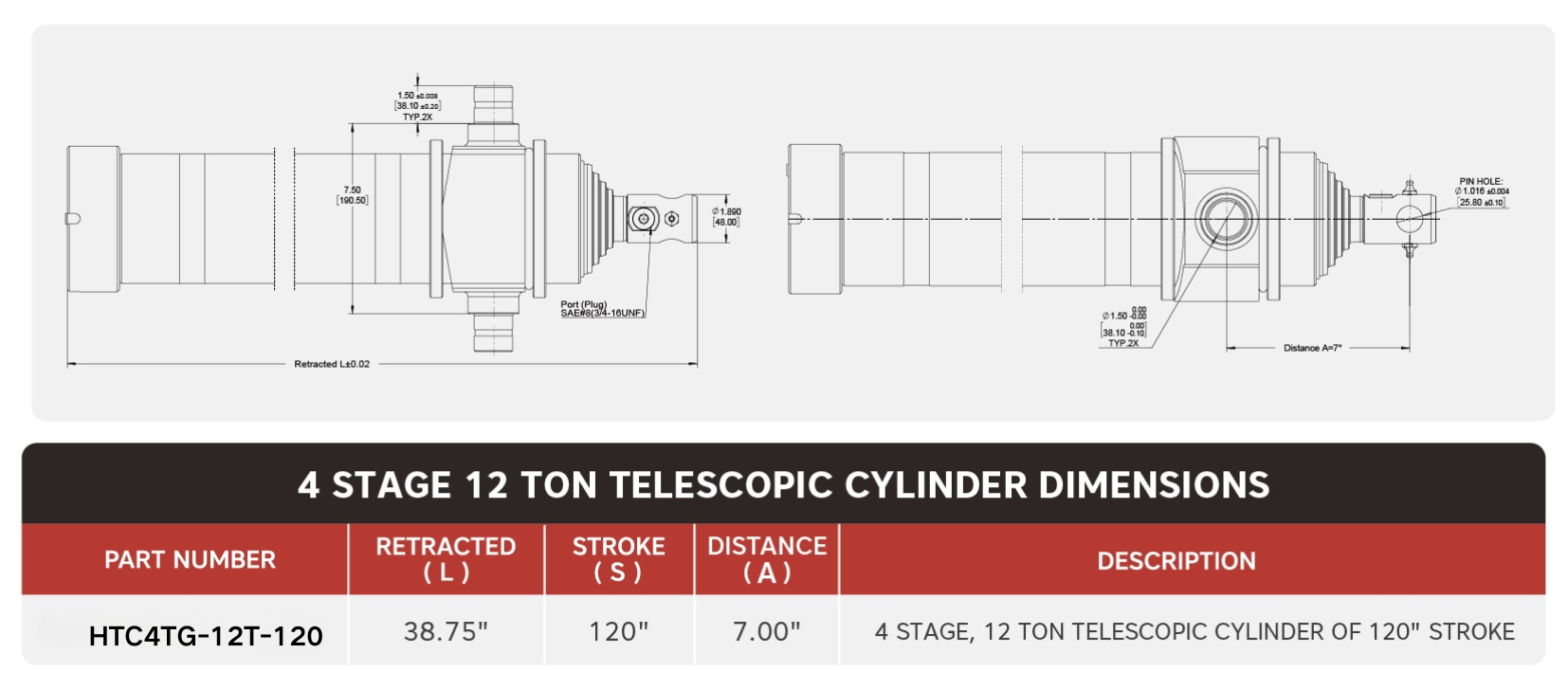 "HTC4TG-12T-120", 4-trinns, 12 tonn av 120"-takts teleskopsylinder
