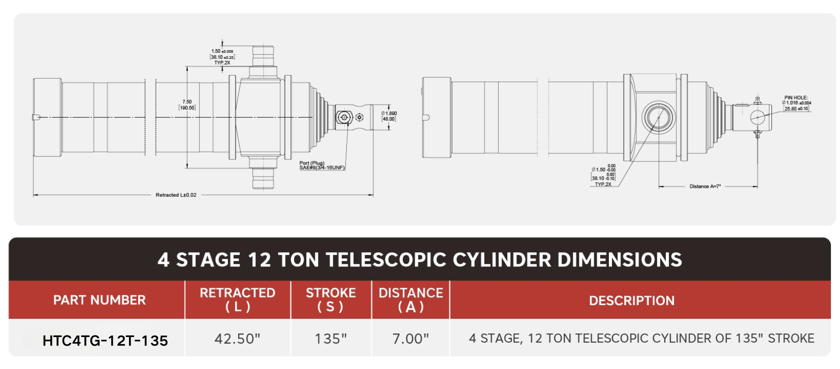 "HTC4TG-12T-135", 4-trinns, 12 tonn av 135"-takts teleskopsylinder